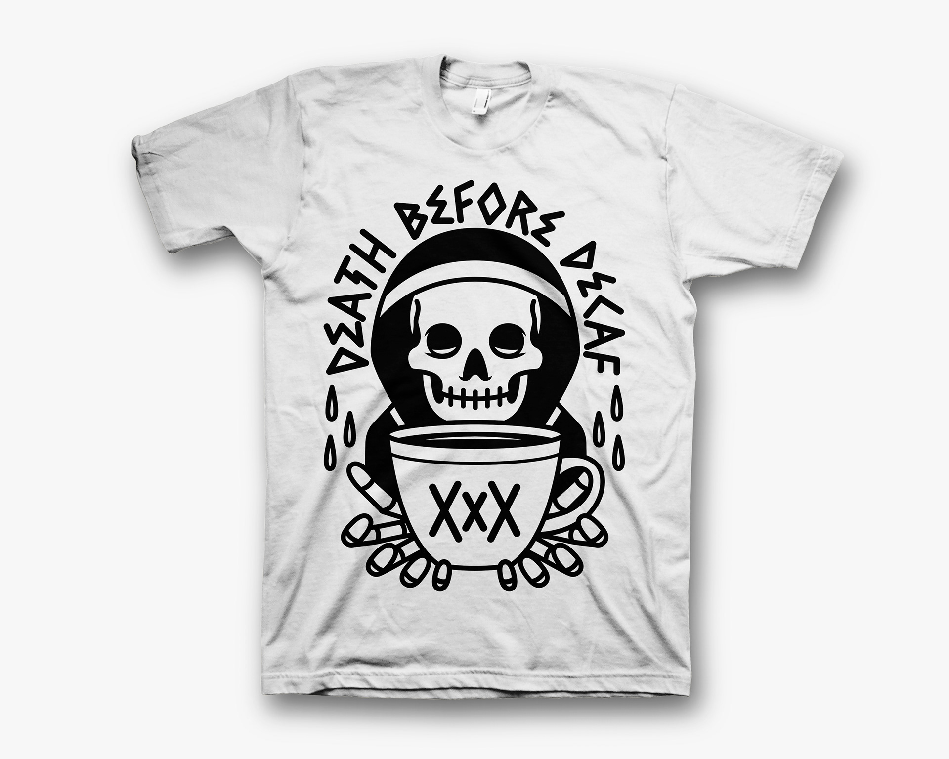 Death Before Decaf. T-shirt design for Whole Hearted Clothing