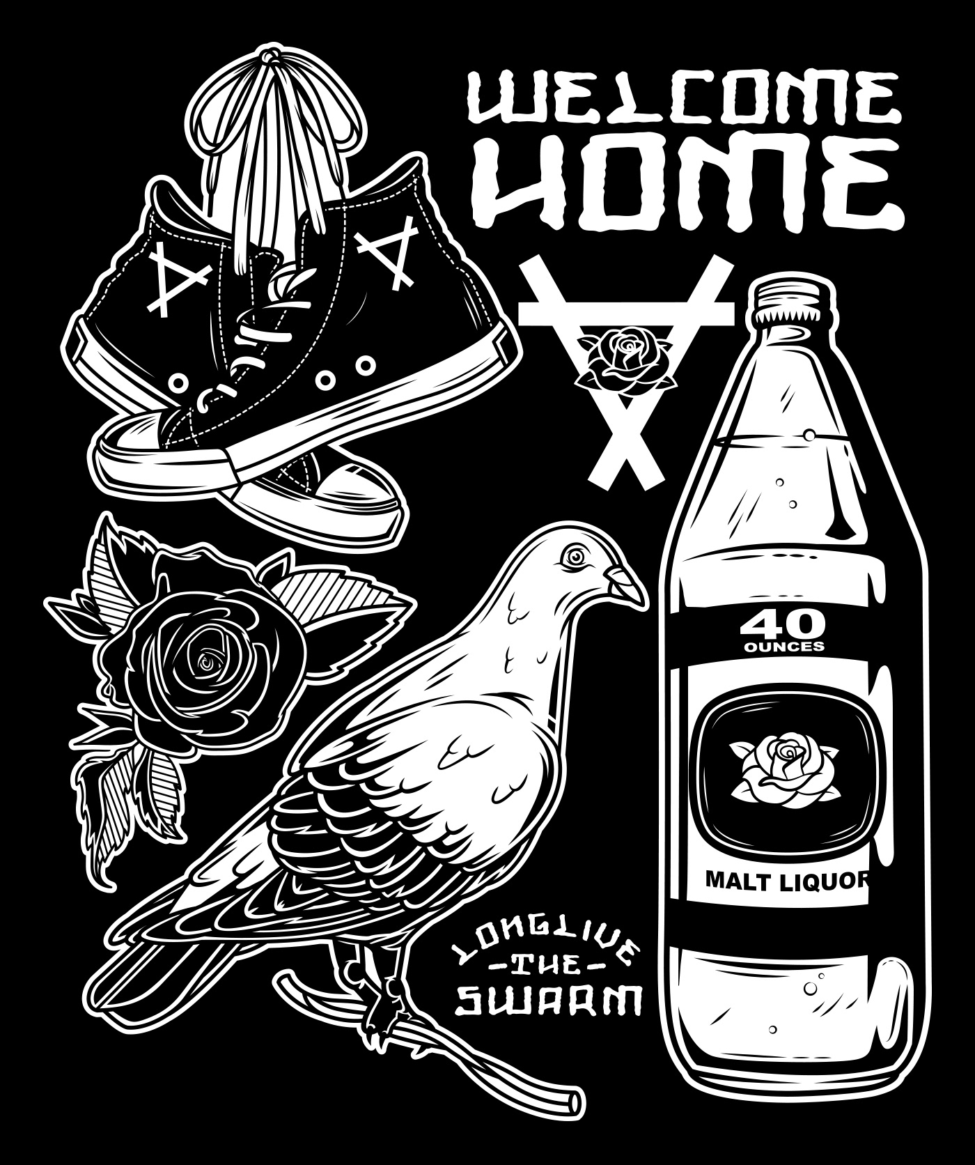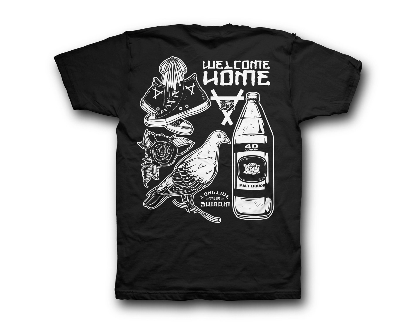 T-Shirt design for Long Live The Swarm's "Welcome Home" colleciton.